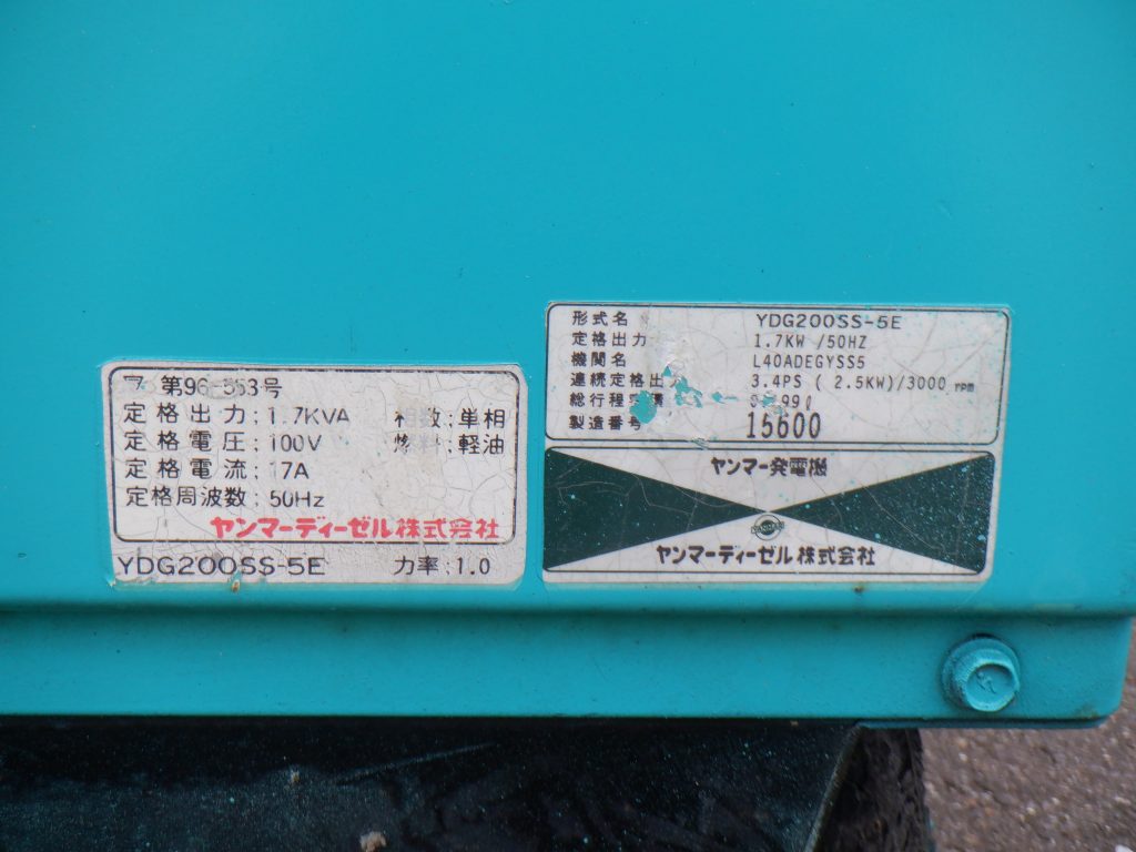 2KW防音発電機① ヤンマー YDG200SS-5E